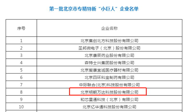 喜報丨明朝萬達正式獲評北京市專精特新“小巨人”企業(yè)稱號