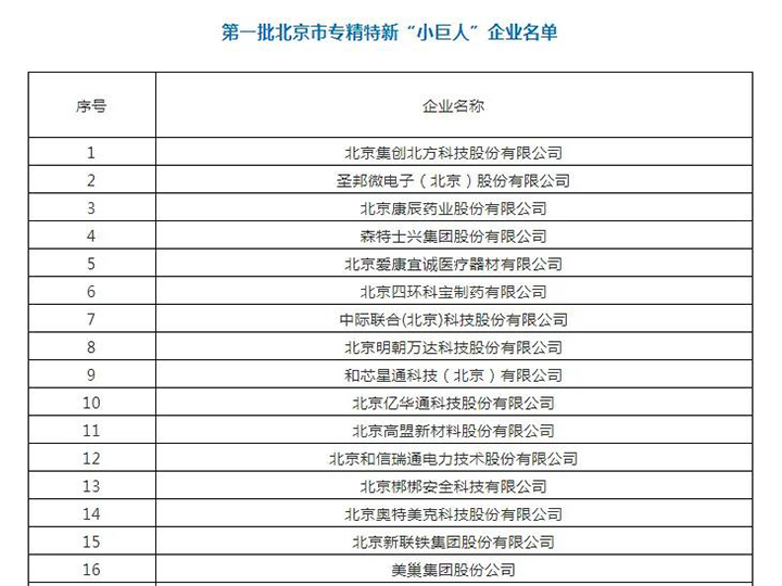 近日,北京市經(jīng)濟和信息化局正式公布了第一批北京市專精特新“小巨人”企業(yè)名單。