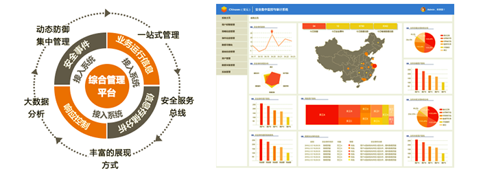 以集中管控大數據系統進行信息采集、分析、控制、展示進行態勢感知,結合終端DLP、郵件DLP和網絡DLP數據,通過數據構建三位一體多方面的安全防護機制,為上層決策與執行提供技術支持,提升理解分析、響應處理的能力。