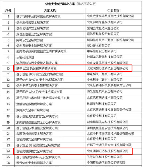 其中,明朝萬達“基于UOS的數(shù)據防護解決方案”和“信創(chuàng)終端數(shù)據安全解決方案”兩項成果成功入選,再次向業(yè)界彰顯了公司卓越的技術創(chuàng)新能力。
