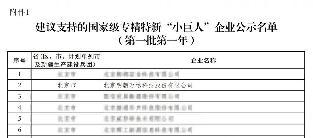 繼入選北京市和工信部專精特新“小巨人”企業名單后,明朝萬達再次入選建議支持的國家級專精特新“小巨人”企業名單,這充分體現了工信部對明朝萬達公司技術、產品和服務能力的肯定,是對公司向專精特新方向高質量發展所取得成績的高度認可。