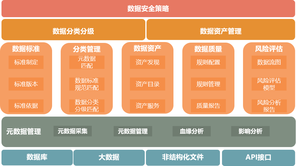 該平臺(tái)通過(guò)數(shù)據(jù)采集、數(shù)據(jù)資產(chǎn)梳理、數(shù)據(jù)分類分級(jí)、數(shù)據(jù)風(fēng)險(xiǎn)評(píng)估等手段,有效幫助用戶解決政企內(nèi)部數(shù)據(jù)治理的問(wèn)題。