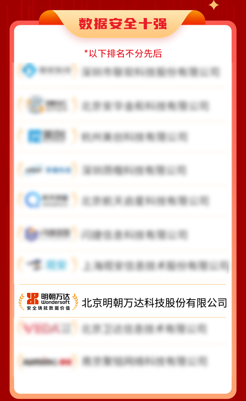 再獲殊榮!明朝萬達入選“數據安全十強”