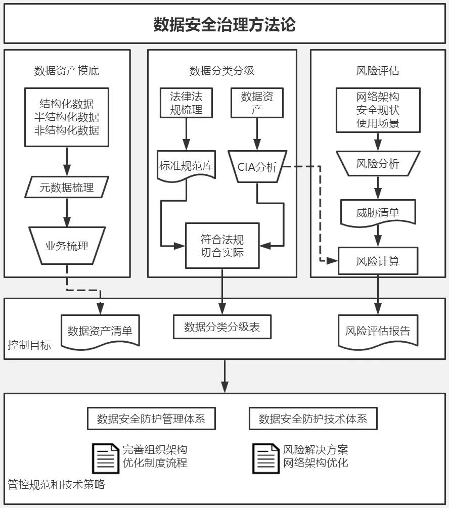 通過數(shù)據(jù)資產(chǎn)靜態(tài)梳理及動(dòng)態(tài)梳理,從合規(guī)性、業(yè)務(wù)需求、安全需求方面整理數(shù)據(jù)資產(chǎn)分布情況,匯總數(shù)據(jù)資產(chǎn)流轉(zhuǎn)及授權(quán)情況,調(diào)研行業(yè)內(nèi)數(shù)據(jù)安全治理思路、模式、方法、工具等,為數(shù)據(jù)分類分級(jí)及安全防護(hù)建議提供數(shù)據(jù)支撐。