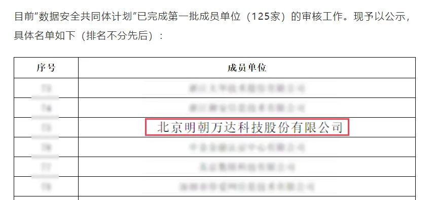 近日,中國信息通信研究院(以下簡(jiǎn)稱“信通院”)公示“數(shù)據(jù)安全共同體計(jì)劃(DSC)”第一批125家入選成員單位名單,明朝萬達(dá)憑借在數(shù)據(jù)安全領(lǐng)域優(yōu)異表現(xiàn)成功入選。