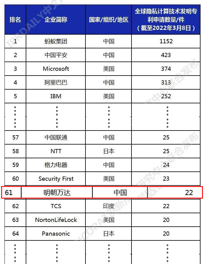 近日,全球知識產權綜合信息服務提供商IPRdaily與incoPat創新指數研究中心聯合發布《全球隱私計算技術發明專利排行榜(TOP100)》。