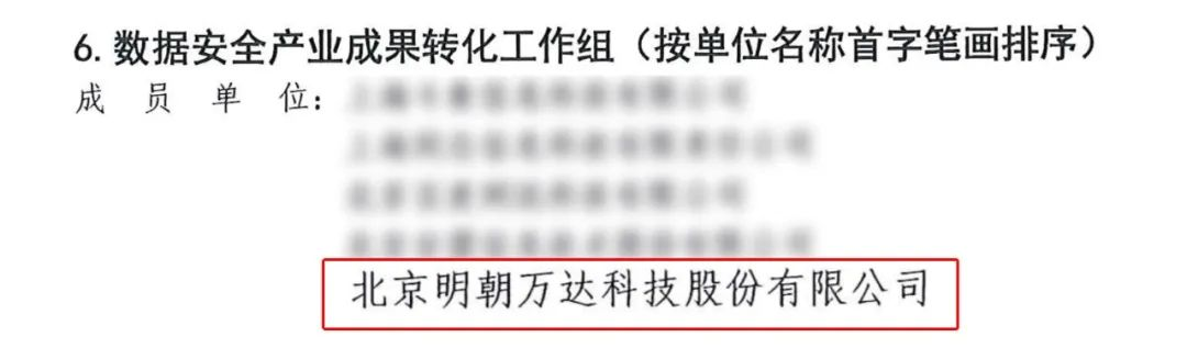 經征集、報名、推薦、審核遴選,北京明朝萬達科技股份有限公司憑借在數據安全領域的卓越表現,成功入選數專委數據安全產業研究工作組、產業標準工作組、產業成果轉化工作組、專家委員會首批成員。