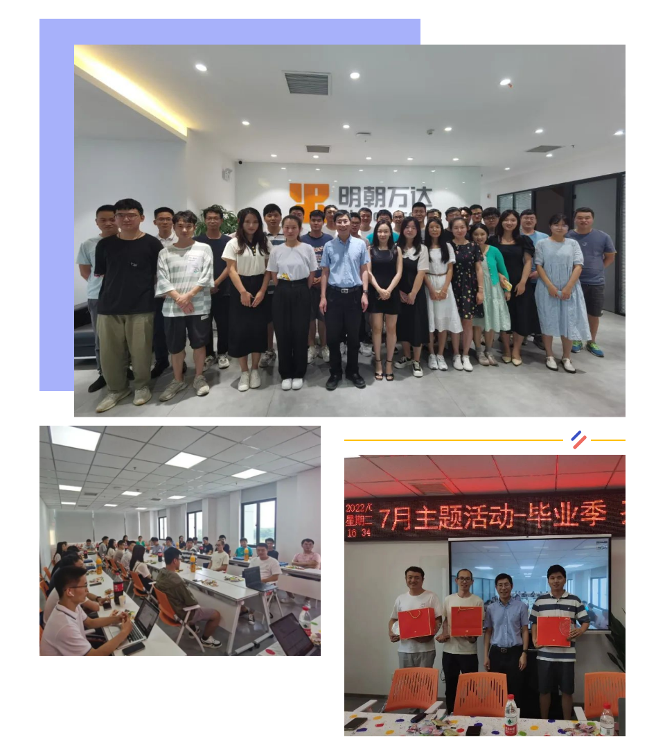 昨日,北京明朝萬(wàn)達(dá)科技股份有限公司舉辦了2022年畢業(yè)季茶話會(huì)。此次茶話會(huì)以“從學(xué)生到職場(chǎng)人——談我在明朝萬(wàn)達(dá)的轉(zhuǎn)變和成長(zhǎng)”為主題,北京、西安等地采用線上線下同步進(jìn)行。明朝萬(wàn)達(dá)領(lǐng)導(dǎo)和以應(yīng)屆畢業(yè)生身份進(jìn)入公司的正式員工們齊坐一堂,茶話未來(lái)。