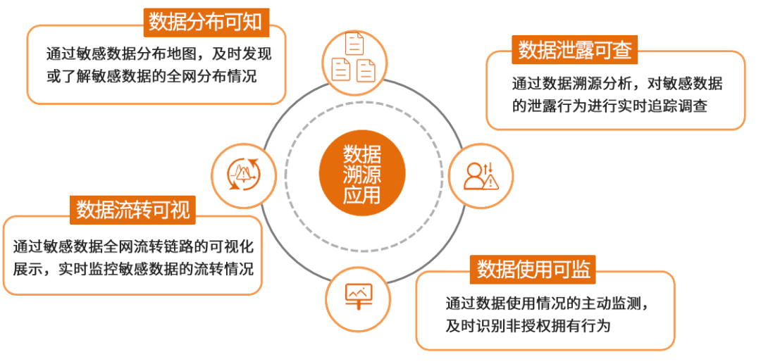 數據的重要性決定了數據安全事件(如數據泄露)的影響范圍、數據損失程度及追責處罰等級,因此重要數據的流轉監測及溯源分析顯得尤為重要。