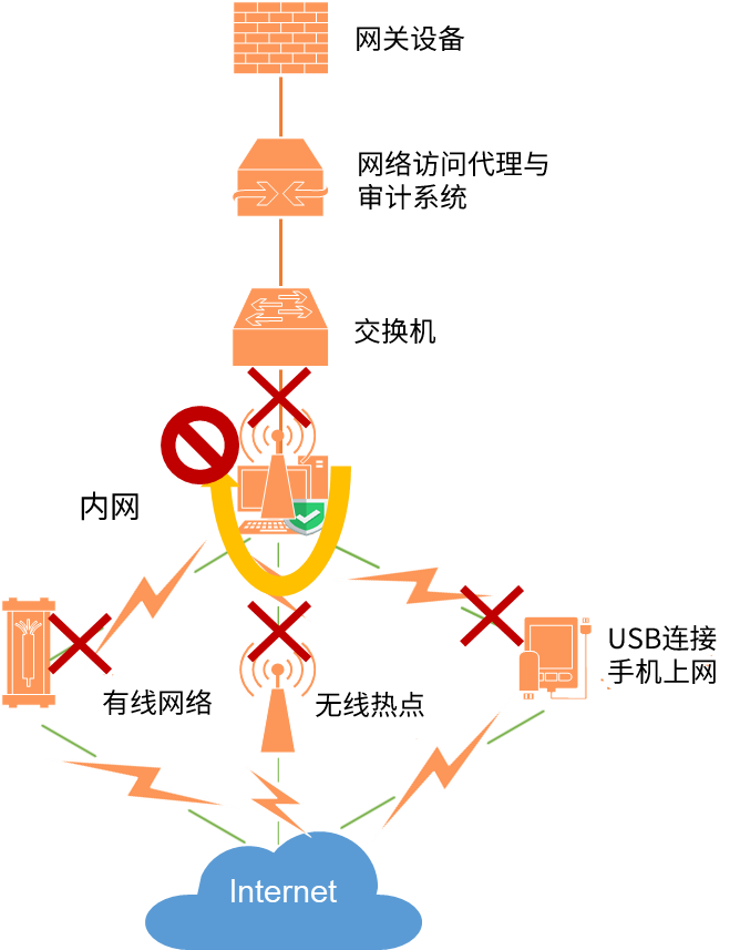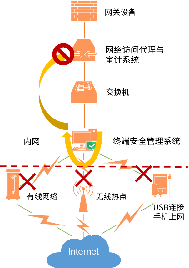 連接至互聯(lián)網(wǎng)的計(jì)算機(jī)被木馬、病毒感染的機(jī)率很大,外部人員可以遠(yuǎn)程完全控制計(jì)算機(jī),查看本地?cái)?shù)據(jù),進(jìn)入關(guān)基企業(yè)內(nèi)部重要系統(tǒng),竊取內(nèi)部信息。連接至互聯(lián)網(wǎng)的計(jì)算機(jī)在下載資料、打開(kāi)郵件附件時(shí),有害程序、病毒在本機(jī)潛伏,在連接關(guān)基企業(yè)內(nèi)網(wǎng)的時(shí)候傳播。無(wú)論是同時(shí)或者不同時(shí)所構(gòu)成的“一機(jī)兩網(wǎng)”場(chǎng)景均存在威脅,連接互聯(lián)網(wǎng)的計(jì)算機(jī)感染竊密軟件,在連接內(nèi)網(wǎng)時(shí)自動(dòng)傳播其他內(nèi)網(wǎng)機(jī)器,獲取關(guān)基企業(yè)內(nèi)網(wǎng)數(shù)據(jù)資源。基于以上背景,依托明朝萬(wàn)達(dá)在數(shù)據(jù)安全領(lǐng)域深入研究和實(shí)踐,結(jié)合關(guān)鍵信息基礎(chǔ)設(shè)施行業(yè)實(shí)際應(yīng)用場(chǎng)景等,明朝萬(wàn)達(dá)提出了一套有效的終端網(wǎng)絡(luò)安全解決方案。該方案主要由網(wǎng)絡(luò)訪問(wèn)代理審計(jì)系統(tǒng)以及終端安全管理系統(tǒng)組成,終端安全管理系統(tǒng)負(fù)責(zé)將計(jì)算機(jī)的網(wǎng)絡(luò)數(shù)據(jù)轉(zhuǎn)發(fā)至網(wǎng)絡(luò)訪問(wèn)代理與審計(jì)系統(tǒng),網(wǎng)絡(luò)訪問(wèn)代理與審計(jì)系統(tǒng)負(fù)責(zé)對(duì)上報(bào)來(lái)的數(shù)據(jù)進(jìn)行處理和管控。通過(guò)將終端安全管理系統(tǒng)安裝至需要管理的專網(wǎng)電腦,由終端安全管理系統(tǒng)將計(jì)算機(jī)的網(wǎng)絡(luò)數(shù)據(jù)轉(zhuǎn)發(fā)至網(wǎng)絡(luò)訪問(wèn)代理與審計(jì)系統(tǒng)進(jìn)行處理、管控,可有效解決關(guān)鍵信息基礎(chǔ)設(shè)施運(yùn)營(yíng)者和企業(yè)面臨的安全風(fēng)險(xiǎn),實(shí)現(xiàn)“一機(jī)兩網(wǎng)”的事前阻斷和告警。