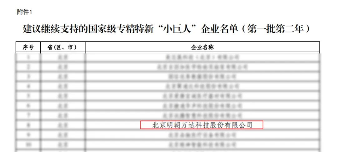 審核通過(guò)丨明朝萬(wàn)達(dá)再獲 “建議繼續(xù)支持的國(guó)家級(jí)專(zhuān)精特新‘小巨人’企業(yè)” 稱(chēng)號(hào)