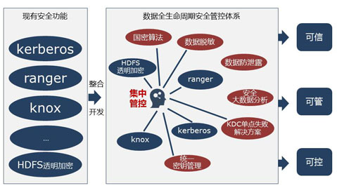 明朝萬達作為數據安全領域的領軍企業,在大數據時代的機遇與挑戰下,圍繞接入風險、訪問風險、存儲與計算風險,通過設置可信節點、設置用戶細粒度數據權限、端到端加解密的方式等手段構建可信大數據安全運行環境。并在此基礎上,整合、開發現有安全功能,基于集中管控理念,以數據安全為核心,通過透明加解密、數據脫敏、安全大數據分析等方式,構建數據全生命周期的安全管控體系,全方位保障企業級大數據安全。
