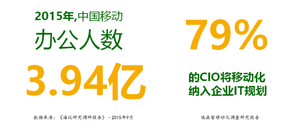據(jù)海比數(shù)據(jù)調(diào)研數(shù)據(jù)統(tǒng)計(jì),2015年,中國(guó)移動(dòng)辦公人數(shù)為3.94億。