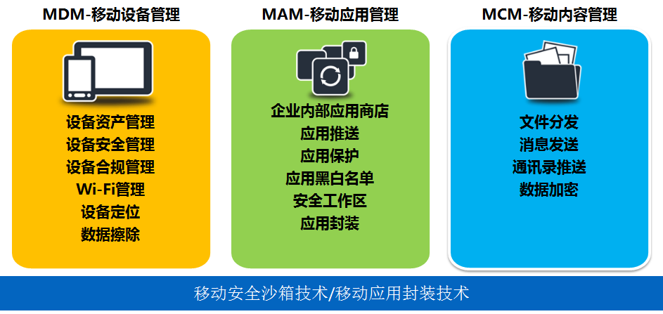 MAM:移動(dòng)應(yīng)用管理,可對(duì)管控移動(dòng)設(shè)備上的所有企業(yè)應(yīng)用進(jìn)行嚴(yán)密的安全管理。Chinasec Maas提供全球頂級(jí)的安全沙箱技術(shù)與應(yīng)用安全保障和管理方案,遵循移動(dòng)設(shè)備應(yīng)用安全準(zhǔn)則和數(shù)據(jù)防泄漏安全標(biāo)準(zhǔn),提供獨(dú)立隔離運(yùn)行環(huán)境,擁有多項(xiàng)專利技術(shù),對(duì)沙箱應(yīng)用進(jìn)行多級(jí)安全管控。支持Android4.0以上的所有安卓系統(tǒng)以及IOS5.0以上所有蘋果系統(tǒng);