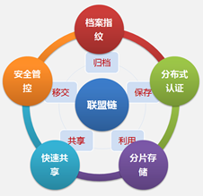 針對(duì)以上三個(gè)方向, 明朝萬達(dá)提出了基于區(qū)塊鏈技術(shù)的檔案管理解決方案,即以“安全服務(wù)于業(yè)務(wù)”為理念,圍繞檔案數(shù)據(jù)的全生命周期進(jìn)行管理,采取檔案指紋、分布式認(rèn)證、分片存儲(chǔ)、快速共享、安全管控等技術(shù)手段,覆蓋檔案的歸檔、保存、利用、共享、移交、銷毀等環(huán)節(jié),促進(jìn)檔案管理的安全體系和共享機(jī)制建設(shè)。