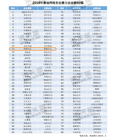 ▲2018年賽迪網絡安全潛力企業榜80強榜單