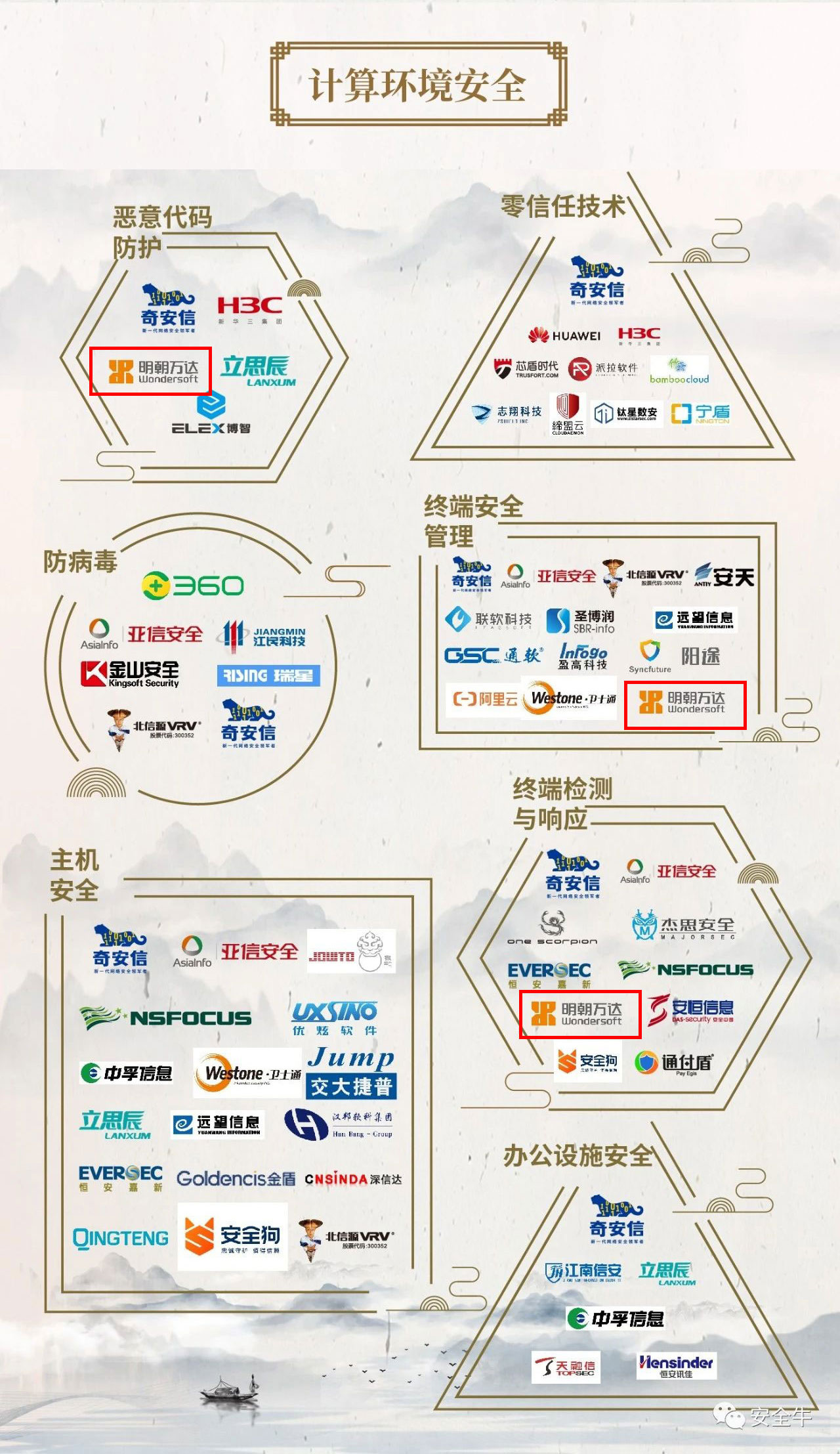 今日,國內權威安全媒體“安全?!卑l布了《中國網絡安全行業全景圖(2020年3月第七版)》。明朝萬達作為中國新一代信息安全技術企業的代表廠商,連續7次入選網絡安全行業全景圖。