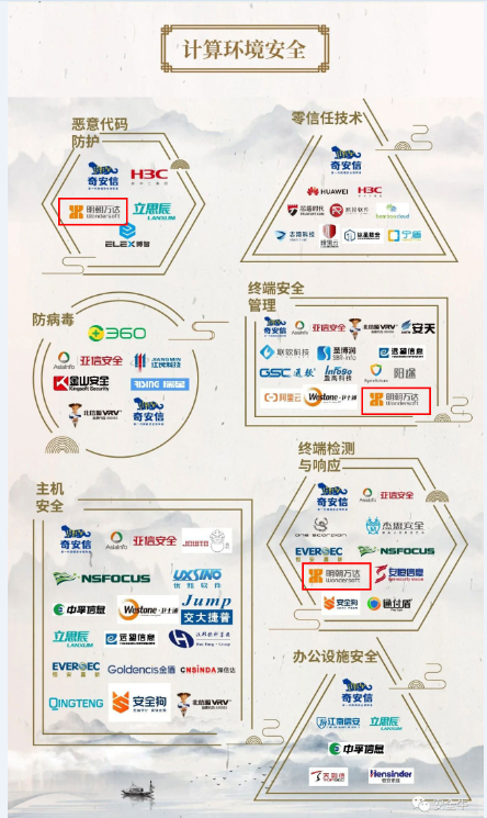 明朝萬達本次入選 13類二級細分領域,覆蓋計算環境安全、數據安全、通信網絡安全、應用安全、智能安全、移動安全 6類一級安全領域。與2019年相比,新入選惡意代碼防護、終端安全管理、終端檢測與響應、數據脫敏、勒索軟件防護、UEBA、網頁防篡改、大數據與人工智能 8類二級細分領域。
