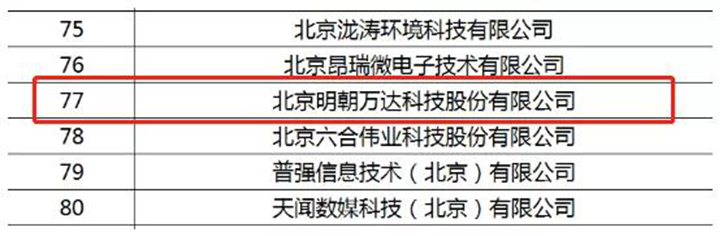 經過多項流程,北京市經濟和信息化委員會評定,明朝萬達成功進入北京市首批“專精特新”中小企業名單,被授予“專精特新”的認證。