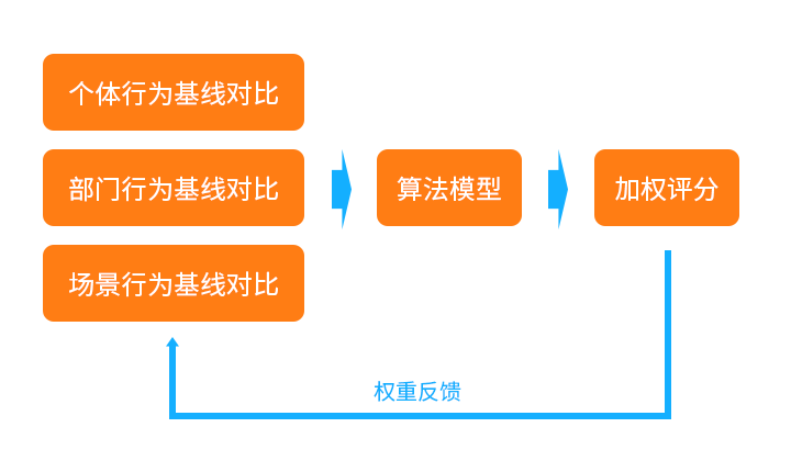 基于大數(shù)據(jù)驅(qū)動(dòng)、安全分析和機(jī)器學(xué)習(xí),通過(guò)刻畫(huà)用戶(hù)行為,將內(nèi)部違規(guī)操作、竊取數(shù)據(jù)、非法刪除等異常行為與正常行為進(jìn)行關(guān)聯(lián)分析,通過(guò)行為建模,準(zhǔn)確地描述出行為細(xì)節(jié),從而提高了命中異常事件的準(zhǔn)確率,彌補(bǔ)了傳統(tǒng)安全防控?zé)o法有效監(jiān)測(cè)內(nèi)部威脅的不足。